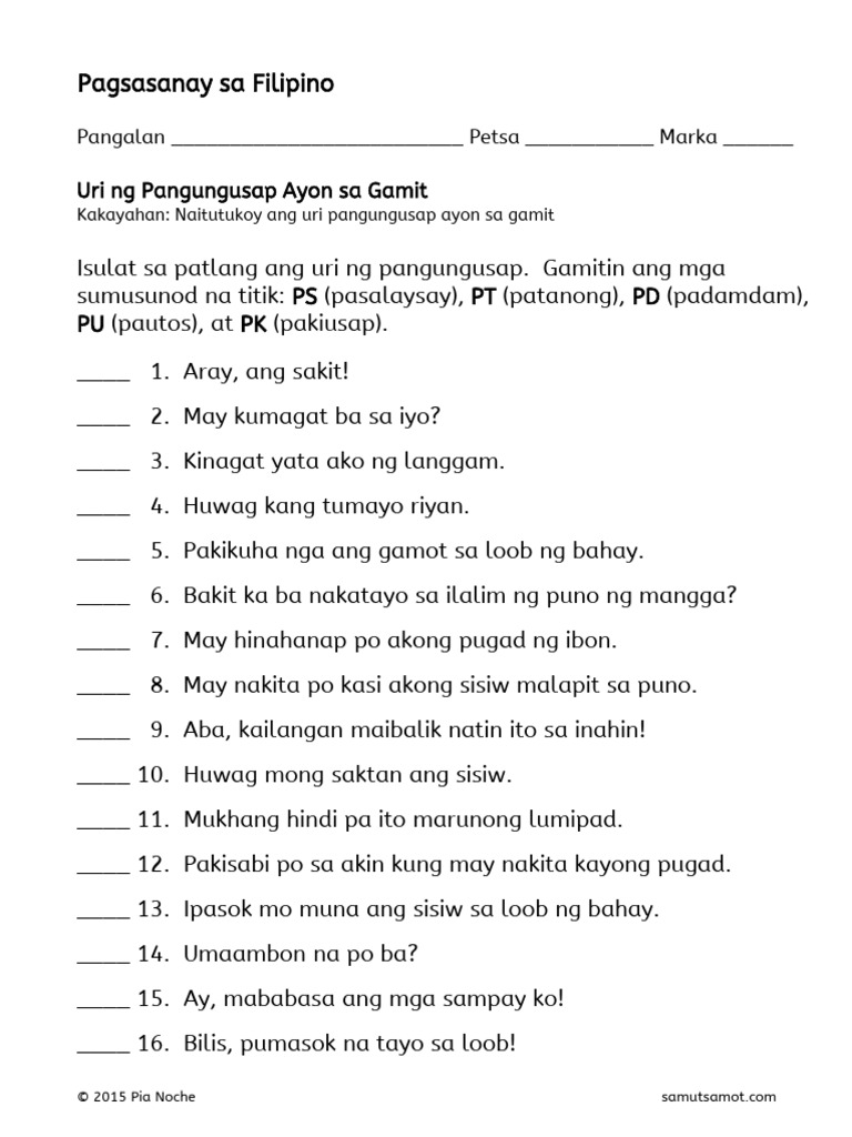 Uri Ng Pangungusap Ayon Sa Gamit 6 Pdf